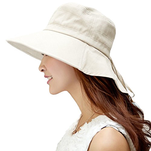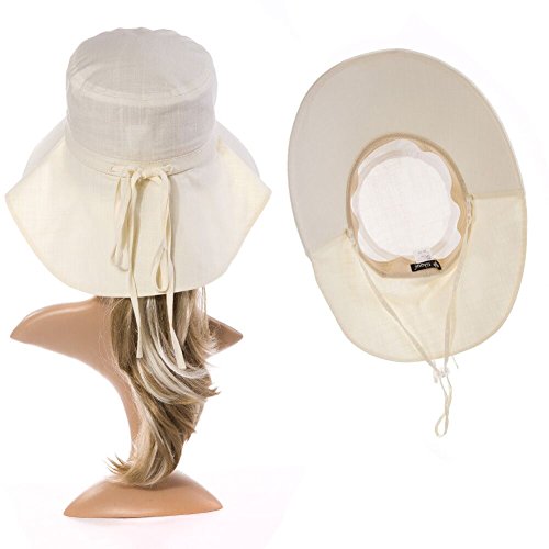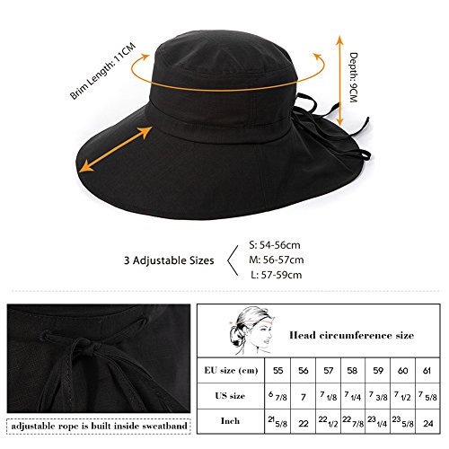 Ladies UV Protection Wide Brim Sun Hat for Summer – Feminine & Packable & Ponytail – help to shade sunlight during beach vacation, cruise, travel, hiking, gardening and boating.