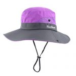 - This sun bucket hat with a wide brim keeps the sun from your face and neck and offers great protection from the damaging rays. Also cap comes with adjustable draw string to keep the hat from flying off in the wind.