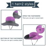FUNCTIONAL AND VERSATILE: The brim is large enough to shade forehead. Inside of sun hat is a breathable mesh layer, which can greatly improve cooling, comfortable and airflow. Especially, a ponytail opening in back is considerate design for women. The buttons on both sides of bucket hat can give you more different styles.