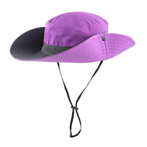 - This sun bucket hat with a wide brim keeps the sun from your face and neck and offers great protection from the damaging rays. Also cap comes with adjustable draw string to keep the hat from flying off in the wind.
