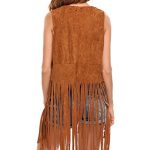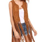 Fringe vest,sleeveless vest, adjustable drawstring and hole, with long tassel decor
