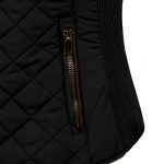 [FEATURE] – Comfortable quilted sleeveless vest with two zip up pockets and stretchy waist line and low turtle neck closing. Quilted zipper closure vest, 2 side pockets with stretch band on waistline. *BROWN COLOR* Contrast Lining.