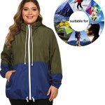 FEATURE – This plus Jacket is Zip-front, reflective striping, and bungee-cord hood, Long Sleeve Hooded, Elastic cuffs, draw cord adjustable hem, Contrast Color Design,Two Front Pocket Decoration, Drawstring Hooded to Help Keep You Dry, Easy to Deal With Light Rain, Quick-drying.