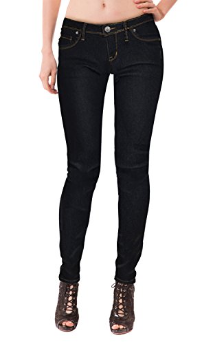 Low rise. Skinny leg. Five pocket style. Button/zip fly closure. Belt loops.