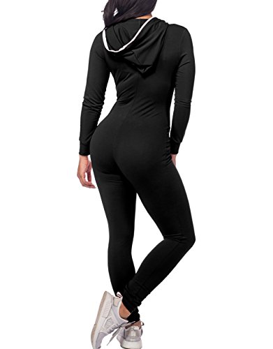 CoolooC Womens Onesies Jumpsuits Zip-up Union Hoodie Long Sleeve One Piece Pajamas Sleepwear Sexy Outfits Bodysuits