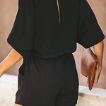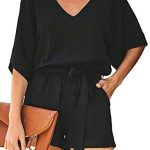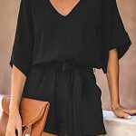 Features: Sexy V Neck, high waist with a removable adjustable self-tie bow belt, cutout keyhole back, flowy bell sleeves, one piece with short pants and side pockets.