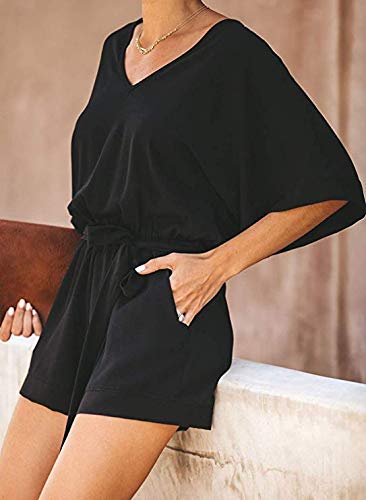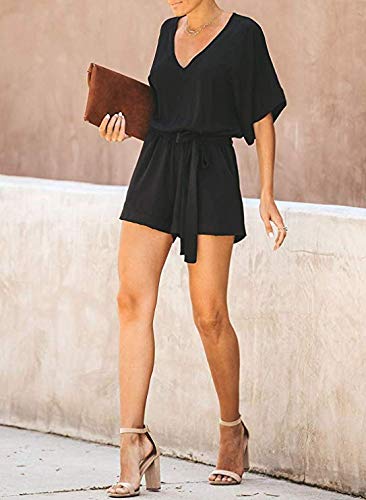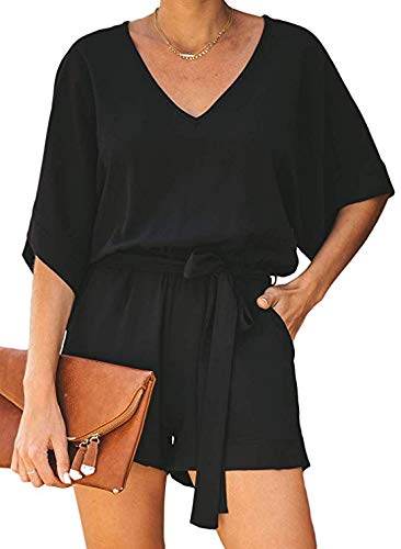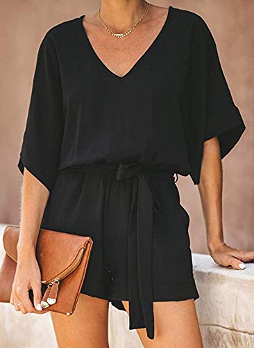 Features: Sexy V Neck, high waist with a removable adjustable self-tie bow belt, cutout keyhole back, flowy bell sleeves, one piece with short pants and side pockets.