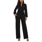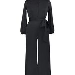 Features: Solid Color, Long Sleeve, Stand Collar, Button Up, Belt, Wide Leg, Straight Leg, Pockets, One Piece Jumpsuit