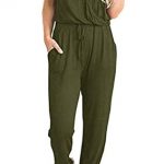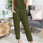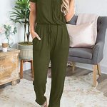 Design:Deep v neck, Full length pant, Elastic waist,Solid color, Front crossed,Short sleeves,Long pants jumpsuit with pocket, Belted wrap romper