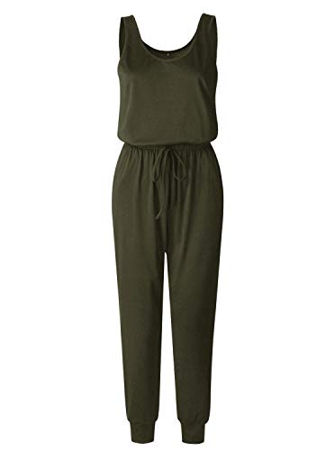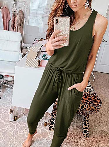 Casual loose tank top jumpsuit feature with scoop neck, loose, adjustable waist drawstring, tank top design, sleeveless, harem pants, beam foot, loose fit one piece long pants jumpsuits for women