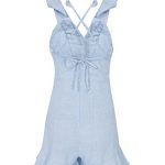 Main Design features:Sexy v neckline,exposed lace-up back, ruffle trimming throughout playsuit,lining bust,elastic High waistline & Mini( Above-Knee length ) .