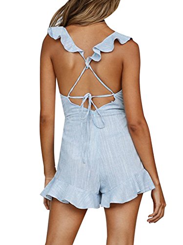 Main Design features:Sexy v neckline,exposed lace-up back, ruffle trimming throughout playsuit,lining bust,elastic High waistline & Mini( Above-Knee length ) .