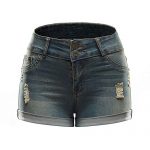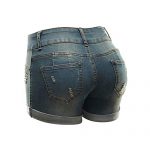 Mid -rise distressed denim shorts a “with a cuffed hem and push up” fit for a curvier look. zip fly closure construction.The shorts leg opening are rolled up and fixed