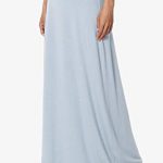 TheMogan Women’s S~3XL Women’s Casual Lounge Solid Draped Jersey Relaxed Long Maxi Skirt