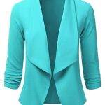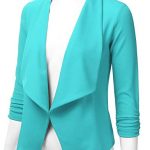 Stylish Thin Lightweight Stretch Three Quarter Gathered Sleeve Open Front Thin Blazer Cardigan Jacket