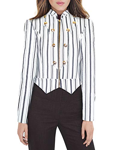 This Womens Military Crop Blazer Jacket is Super Comfy and Stretchy, Offer gold zip up button for a stylish look. Great for any occasion.