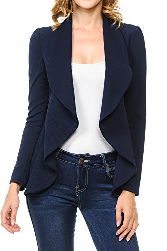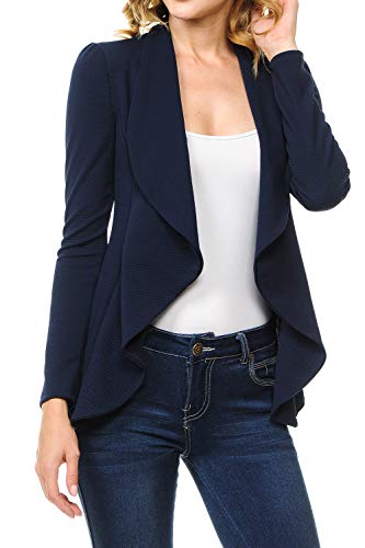 MINEFREE Women’s Long Sleeve Classic Draped Open Front Lightweight Blazer / S-3XL / Made in USA