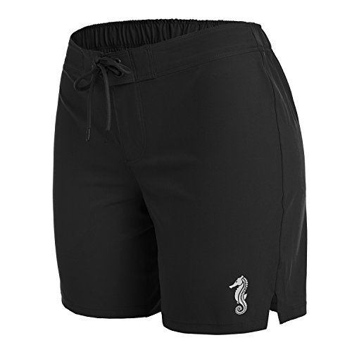 Solid board shorts work well with any swimsuits and rash guard shirt at the beach.
