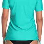 Unique design with adjustable side drawstring for elegant ruched look, you can adjust the both side of the swim shirt to best fit for you body and belly