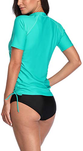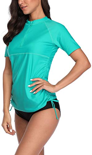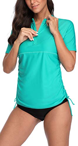 Unique design with adjustable side drawstring for elegant ruched look, you can adjust the both side of the swim shirt to best fit for you body and belly
