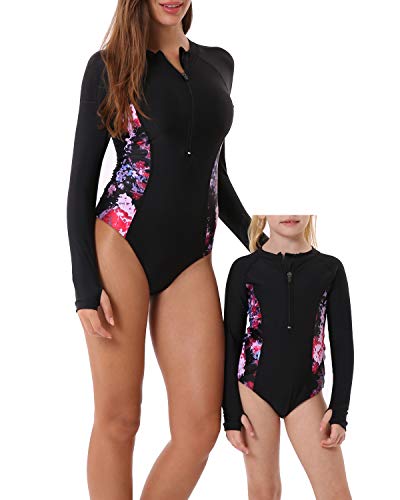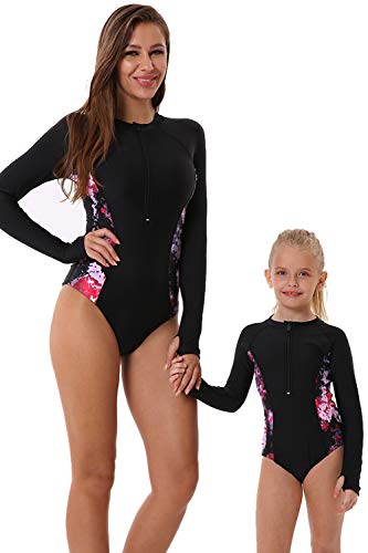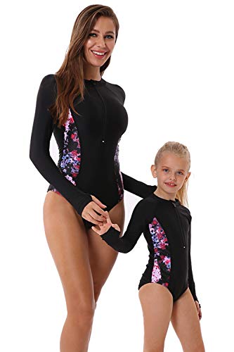 💕Sun protection: Mom and daughter matching One piece long Sleeve Rashguard protects against rashes, abrasions, and harmful UV Rays (UPF 50+)
