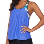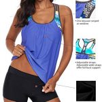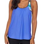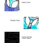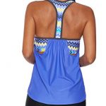 Aleumdr Womens Blouson Striped Printed Strappy T-Back Push up Tankini Top with Shorts