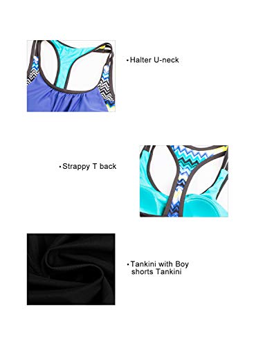 Aleumdr Womens Blouson Striped Printed Strappy T-Back Push up Tankini Top with Shorts
