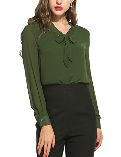 【Loose and Elegant】: This office design blouse is loose fit, comfortable to wear and bring you more enjoyable time. The tie front blouses give you professional woman outfit.