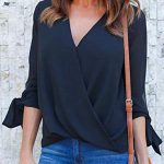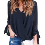 V neck short sleeves top shirt, chiffon blouse, wrap front surplice shirt, intersect in the front bottom. Add this casual loose blouse to your collection of formal work shirt.