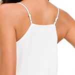 Evera B’s Strappy V-Neck Cami Top is a year round essential for casual elegance. Finished with an effortless shirttail hem, spaghetti straps, and liner.