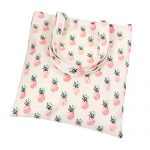 100% cotton canvas tote, pink pineaple overlay printed on beige pattern