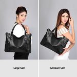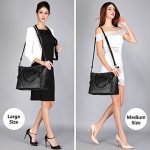 This purse has 2 sizes, the larger one is: 15.75″L x 6.7″W x 11″H (fit up to 14″ universal laptop), and the medium one is: 13.8″L x 6″W x 10.4″H (fit up to 14″ MacBook Air). Weight : the larger one is 2.76 pounds/1.25 kg, and the medium one is 2.54 pounds/1.15 kg.