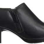 The emslie warren is an exciting new shoe from the clarks collection. great for work or play, this slip on heel will keep you comfortable with cushion soft technology and an ortholite footbed.